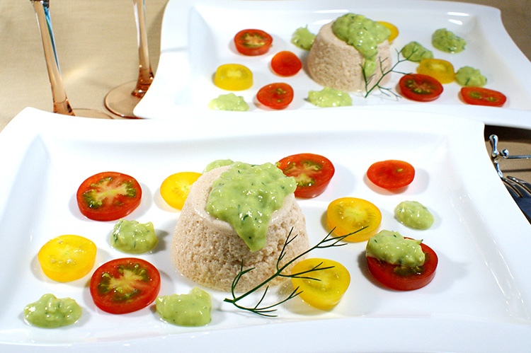 - 銀ざけムースはパレットナイフなどを使って型の境目に空気を入れ、盛り付ける皿を蓋にして逆さまに返し型からはずします。(器も冷やしておくと、一層ひんやりが続きます。)